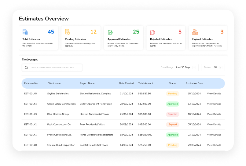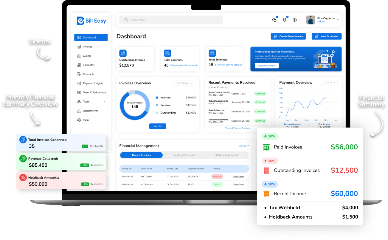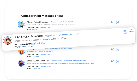 Bill Easy helps you manage estimates, contracts, schedules, and teams seamlessly while keeping every aspect of the project organized. With automated workflows, our advanced tool improves collaboration , reduces miscalculations, and enhances teamwork.